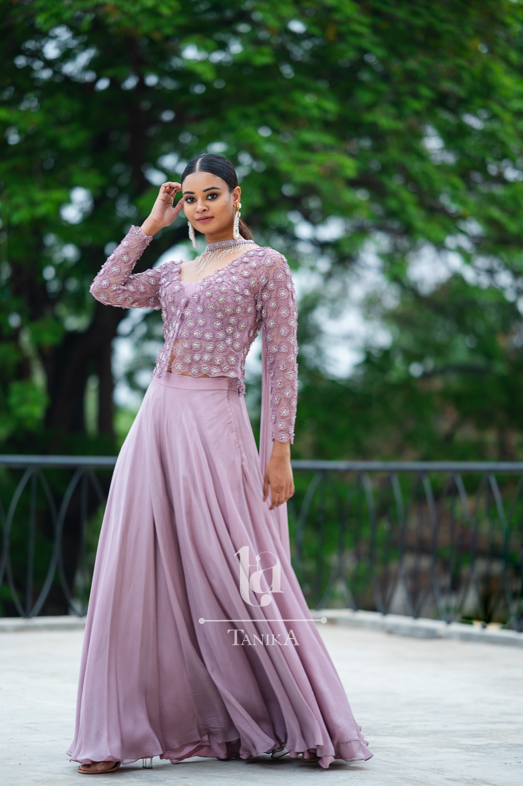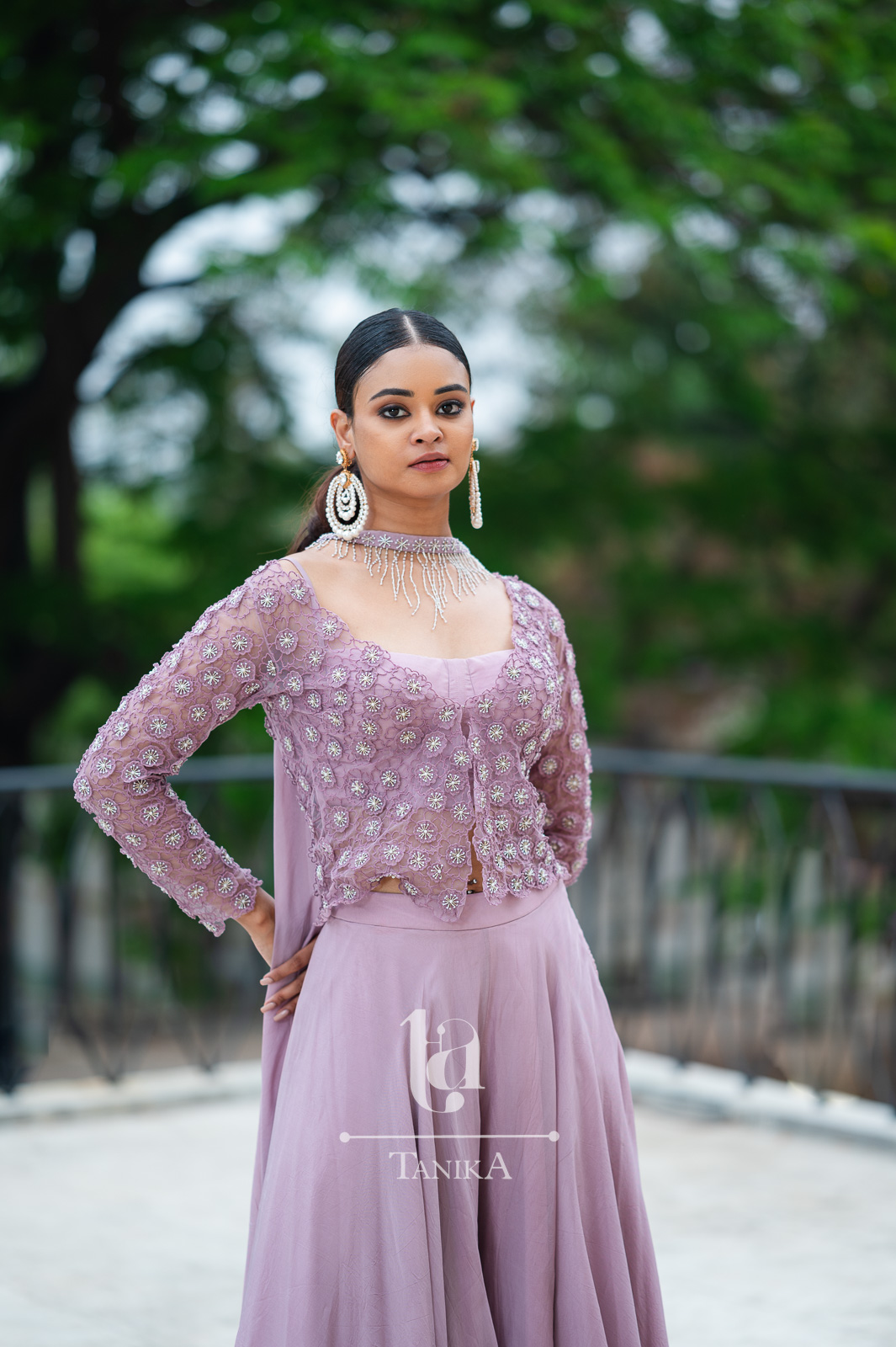 Embroidery: Hand Embroidered with white beads and hand made flowers.